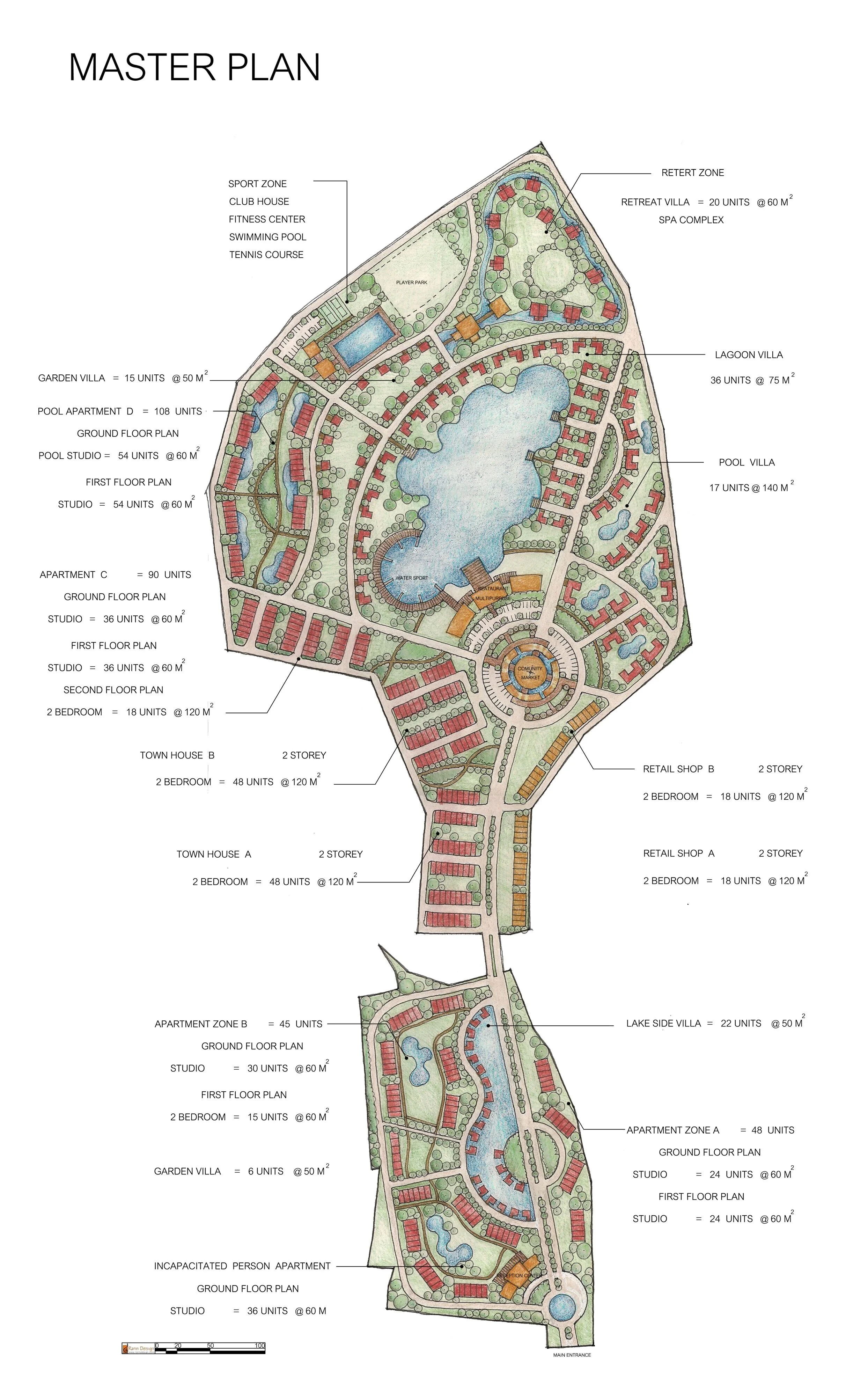 Development including golf course, hotels, yoga and wellness retreats, marina, residential and retail